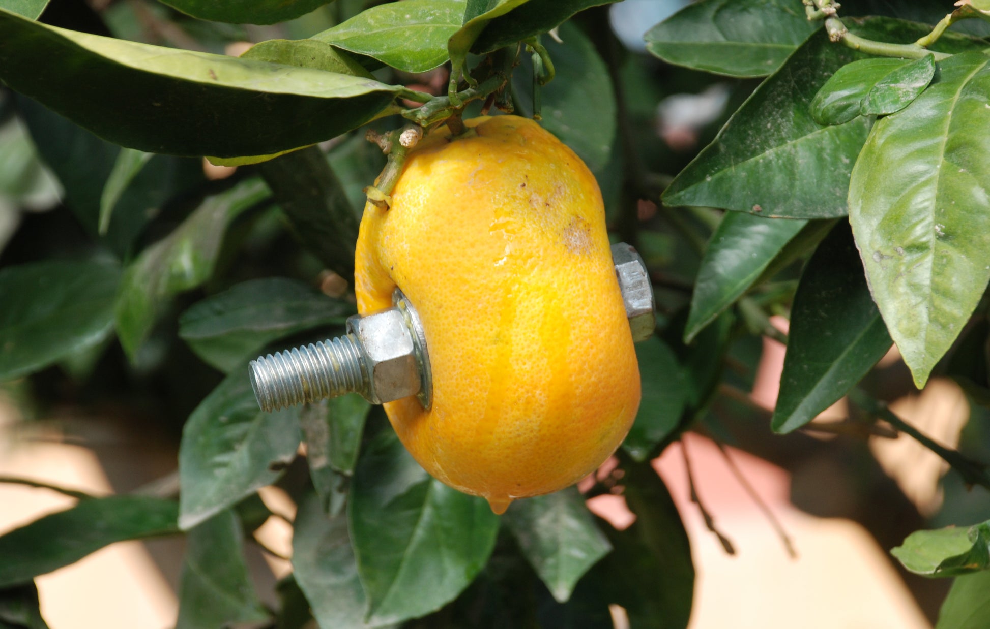 Produced in my garden in northern Gaza, this artwork incorporates an orange, a potent cultural symbol of Palestine, renowned for its orange exports prior to the Nakba and the 1948 occupation. The iron screw embedded within symbolizes the ongoing occupation and siege on Gaza since 2006. This tree, which was 60 years old, provided us with oranges for many decades. Unfortunately, it was destroyed along with my house in the recent bombardment of Gaza.