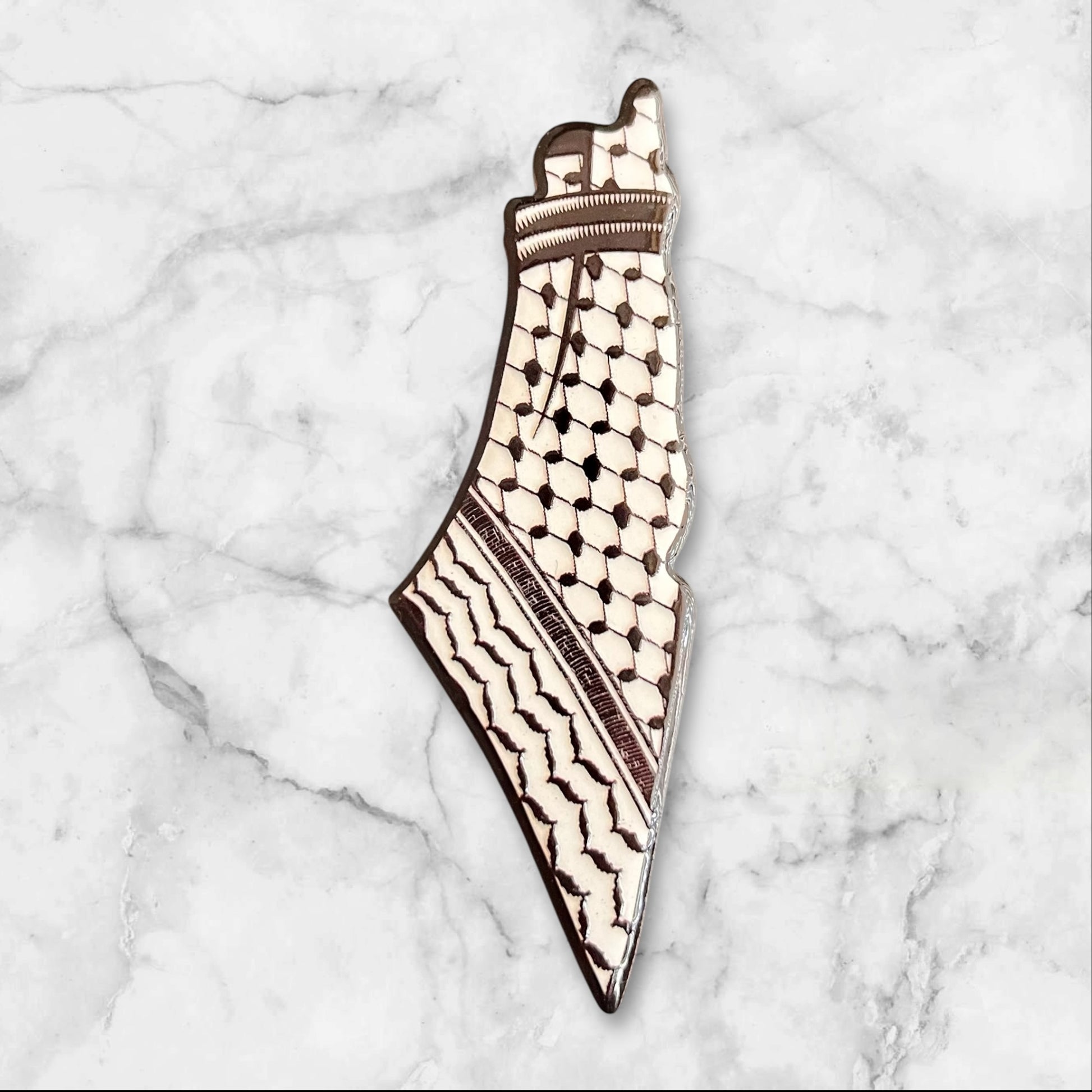 A set of magnets featuring a variety of traditional Palestinian designs, including cultural motifs, landmarks, and embroidery patterns. Perfect for decorating metal surfaces such as your fridge, locker, or whiteboard. Available individually or as a set.