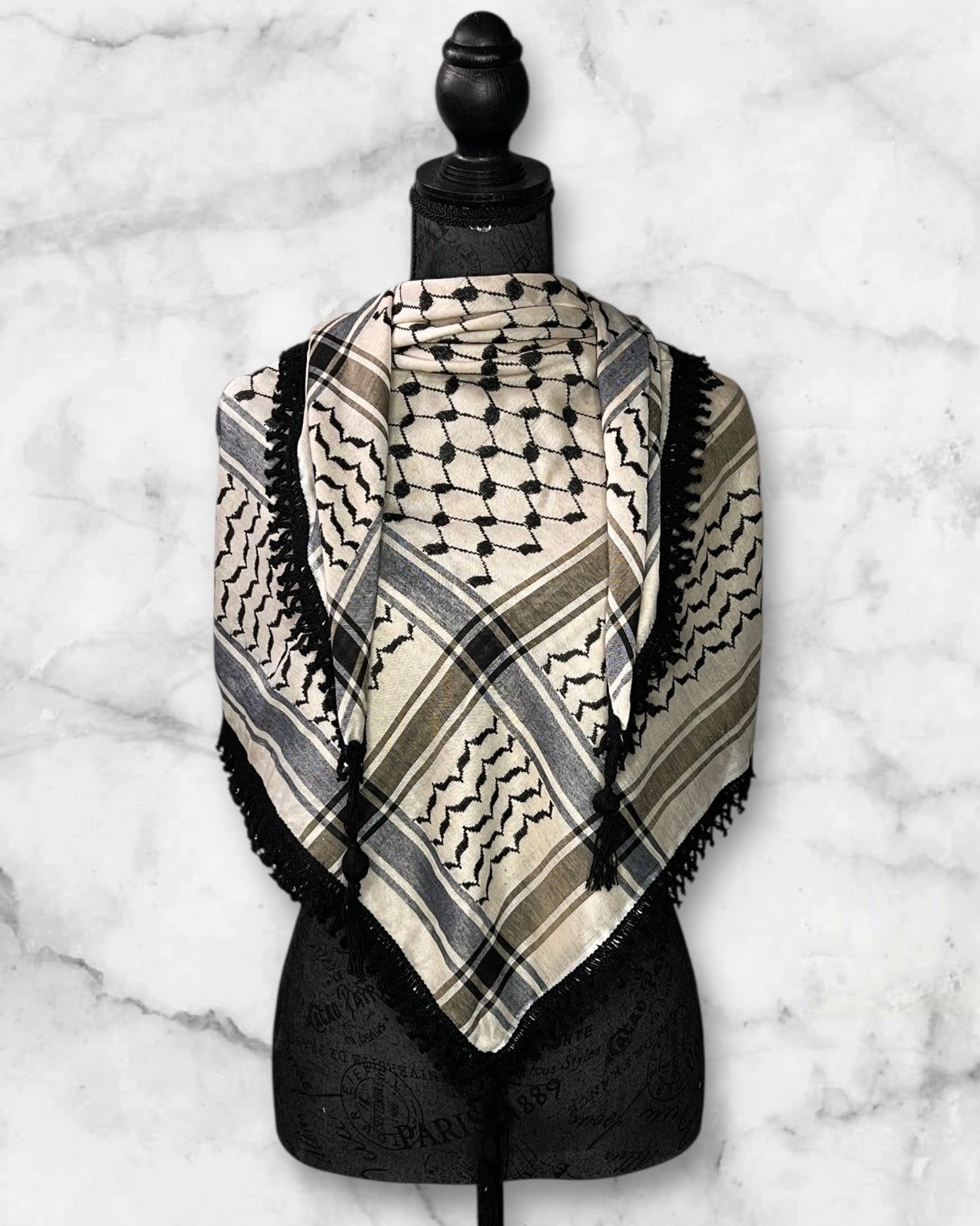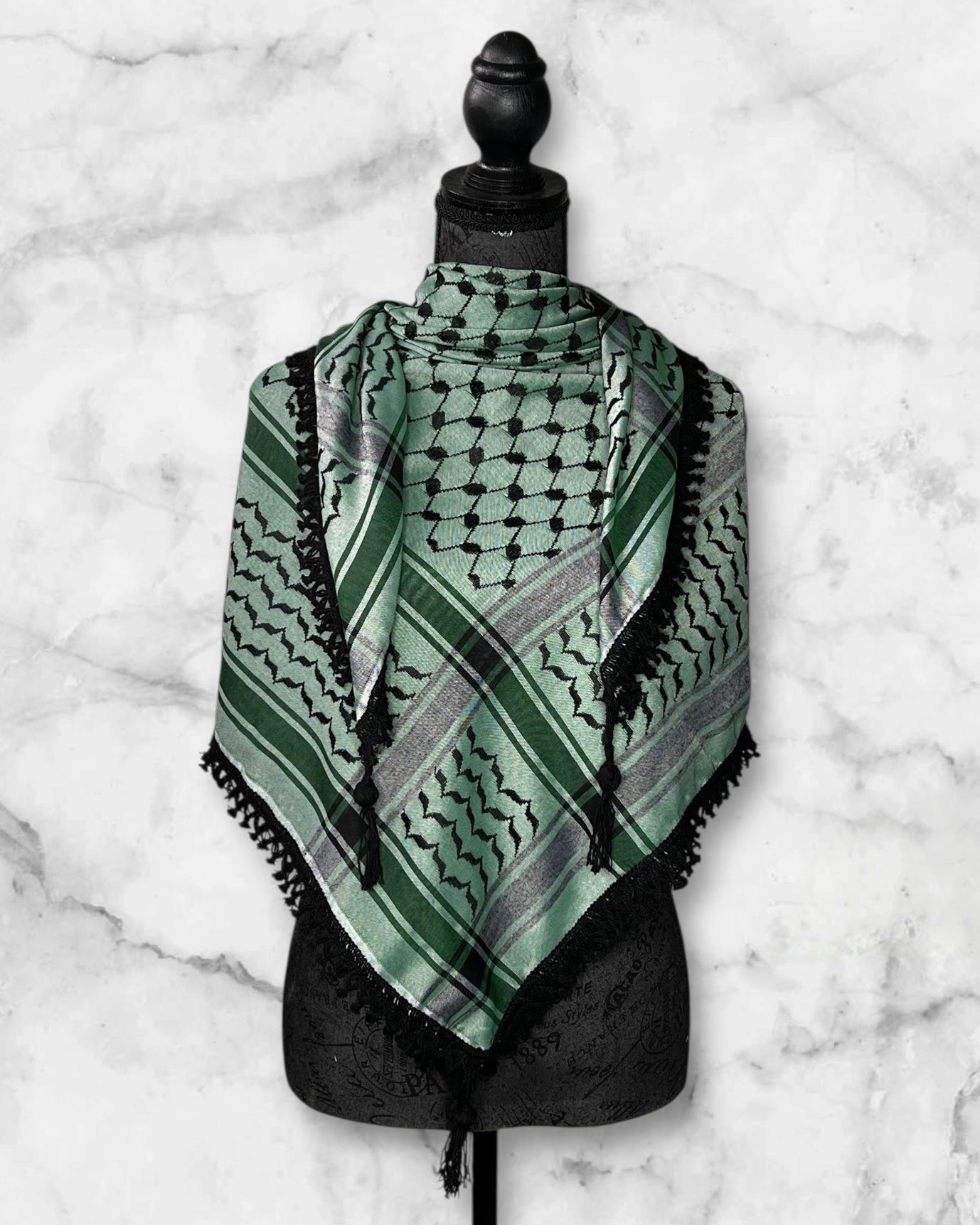 The classic styles honor the traditional keffiyeh patterns, while the unique colors offer a contemporary take, allowing for a personal touch that complements various styles. Perfect for use as a head covering, scarf, or wrap, these keffiyehs are versatile, cultural pieces that suit both casual and formal wear.